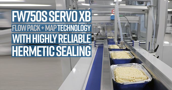 packs in 1x1 shrink barrier film - aluminium trays with pasta. With MAP predisposition